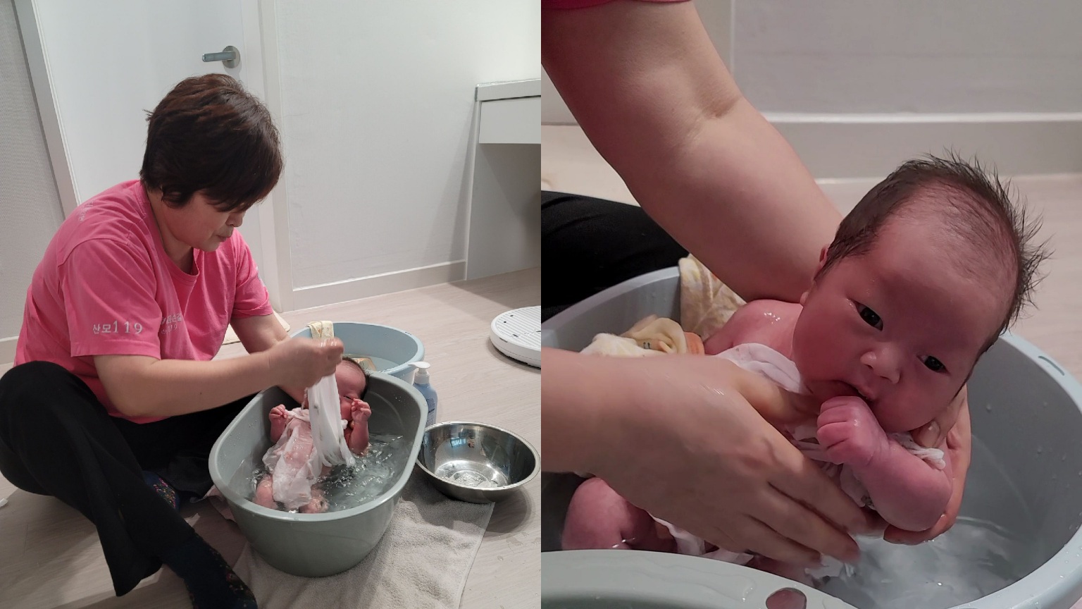 둘째지만 첫째때부터 목욕 담당은 아빠여서 신생아 목욕은 어려었는데, 관리사님 덕분에 수월하게 목욕시켰어요. 태지도 좀 있었는데, 태지도 탯줄도 아주 예쁘게 떨어졌습니다.